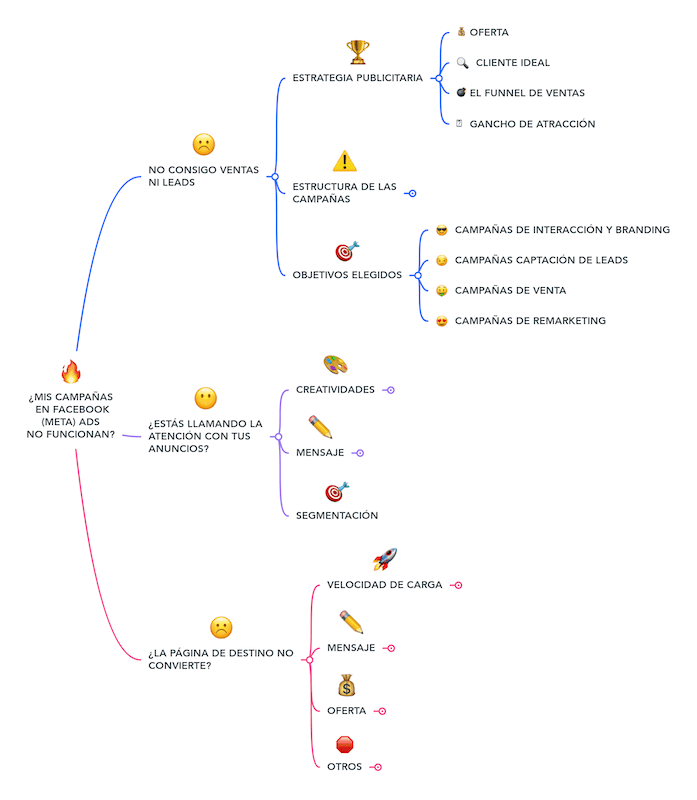 Un mapa mental dividido en tres cuadrantes con los que podrás detectar dónde estás fallando.